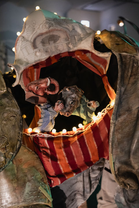 Adapted & co-directed by Edward Einhorn. Costume and puppet by Jacky Kelsey and Grace Needlman.